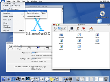 Mac OS X 10.0, de eerste versie van de nieuwe generatiebesturingssystemen.