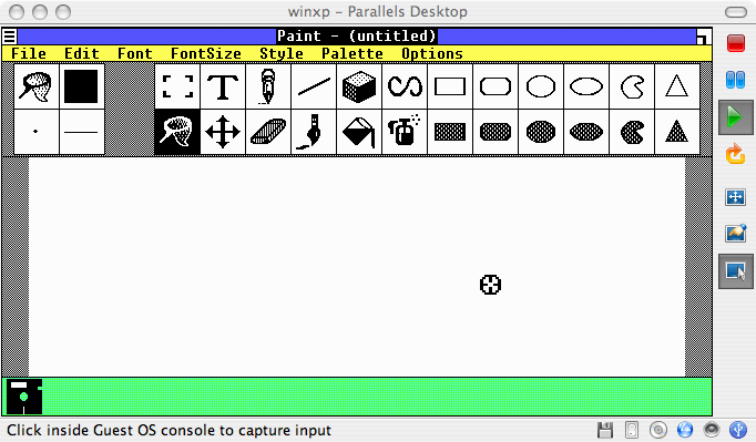 Paint voor Windows XP, deze versie kon afbeeldingen opslagen in JPEG, GIF, TIFF and PNG